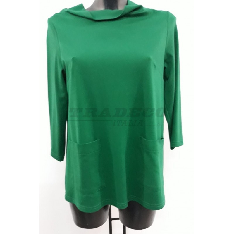 Description: three quarter sleeves blouse with cowl neckline and two front pockets