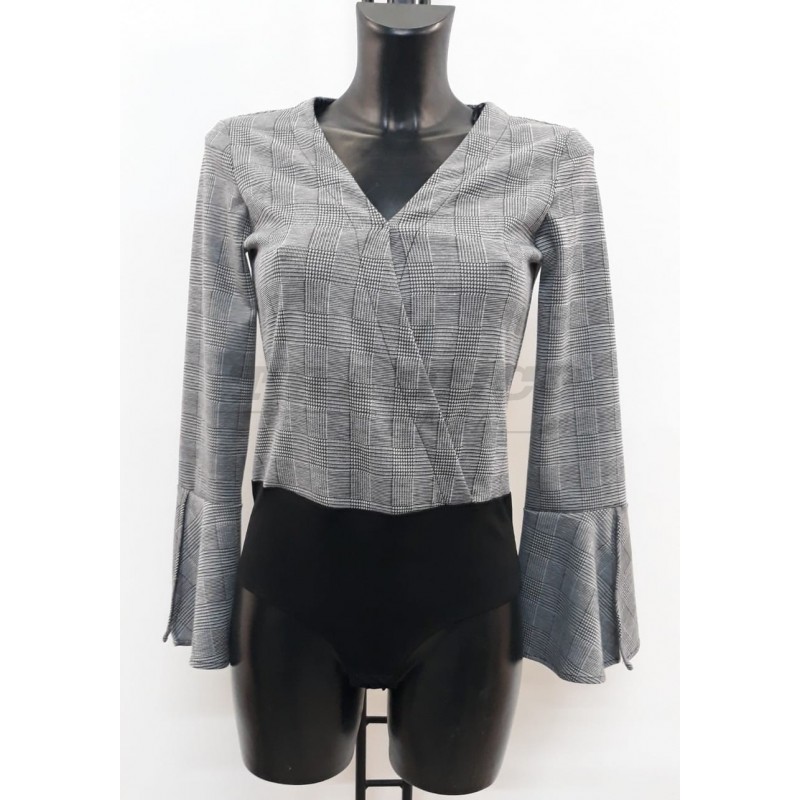 Description: long bell sleeves crossed on the front bodysuit with V neckline and flounced sleeves