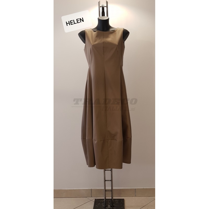 Description: sleeveless long dress with bateau neckline