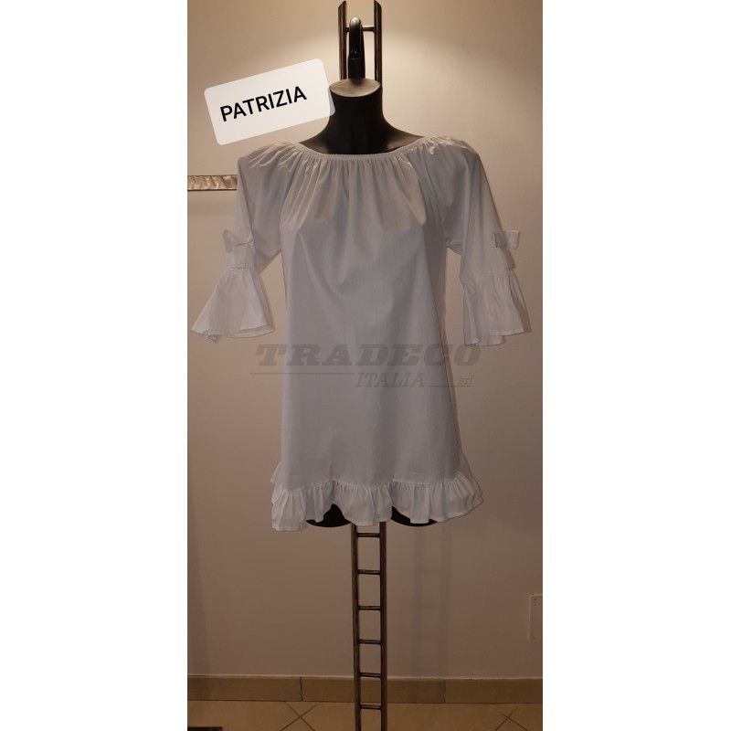 Description: flounced at the bottom blouse with circular short sleeves with bow on the sleeves