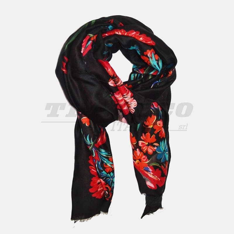 Description: black scarf with floral print