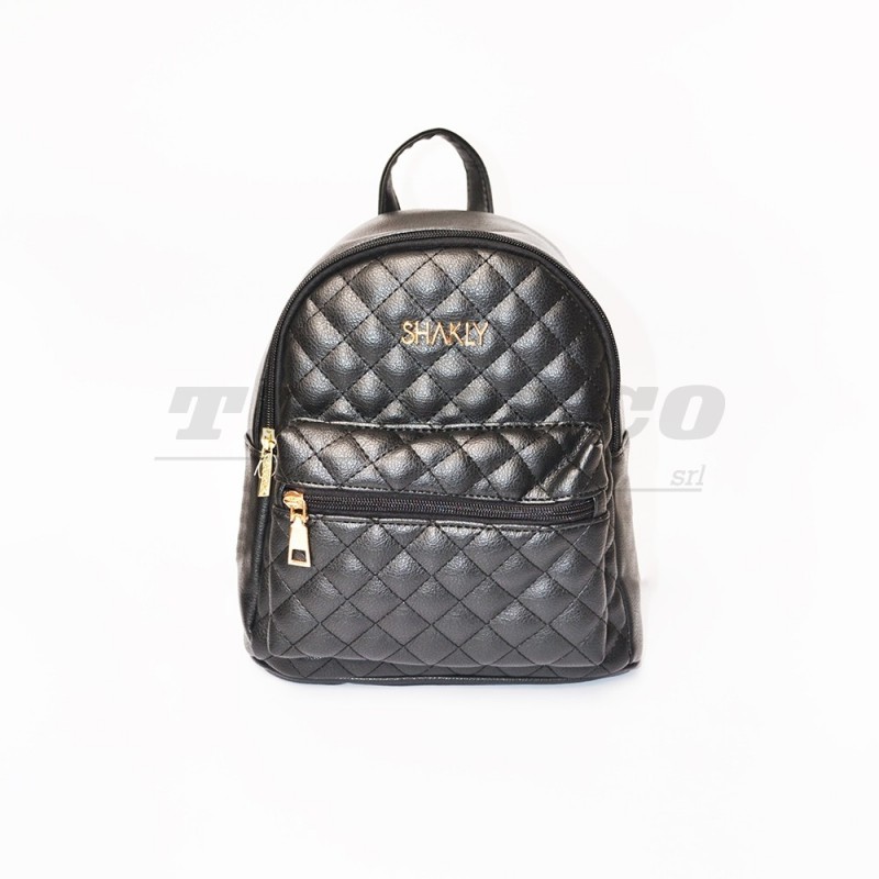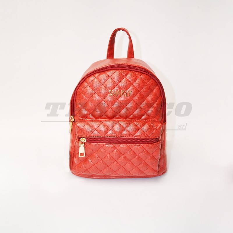 Description: faux leather backpack with low zip pocket