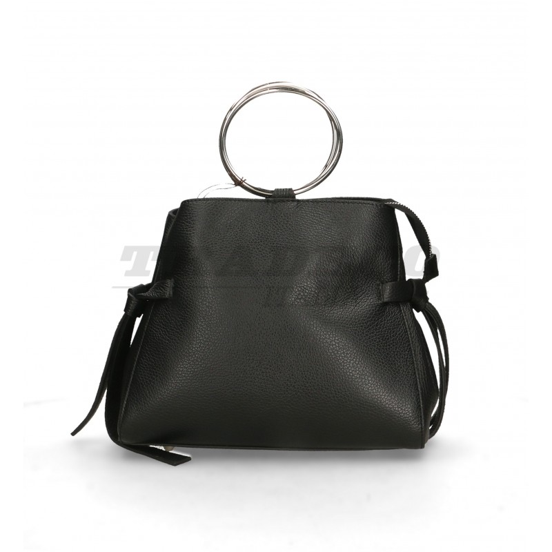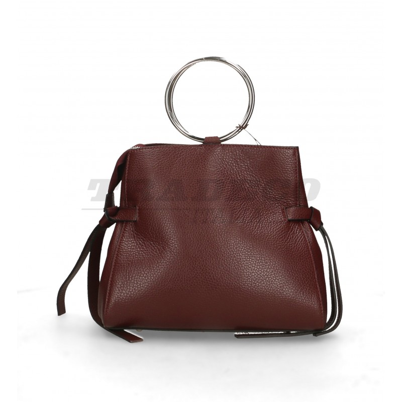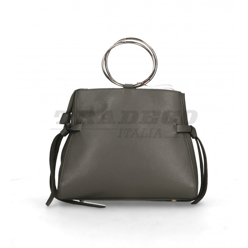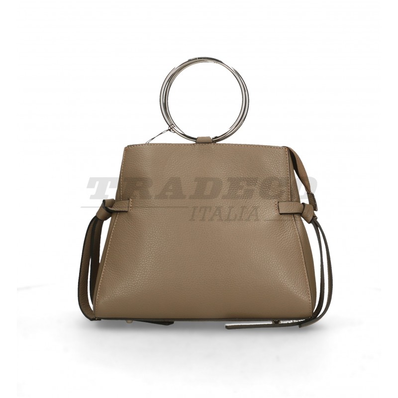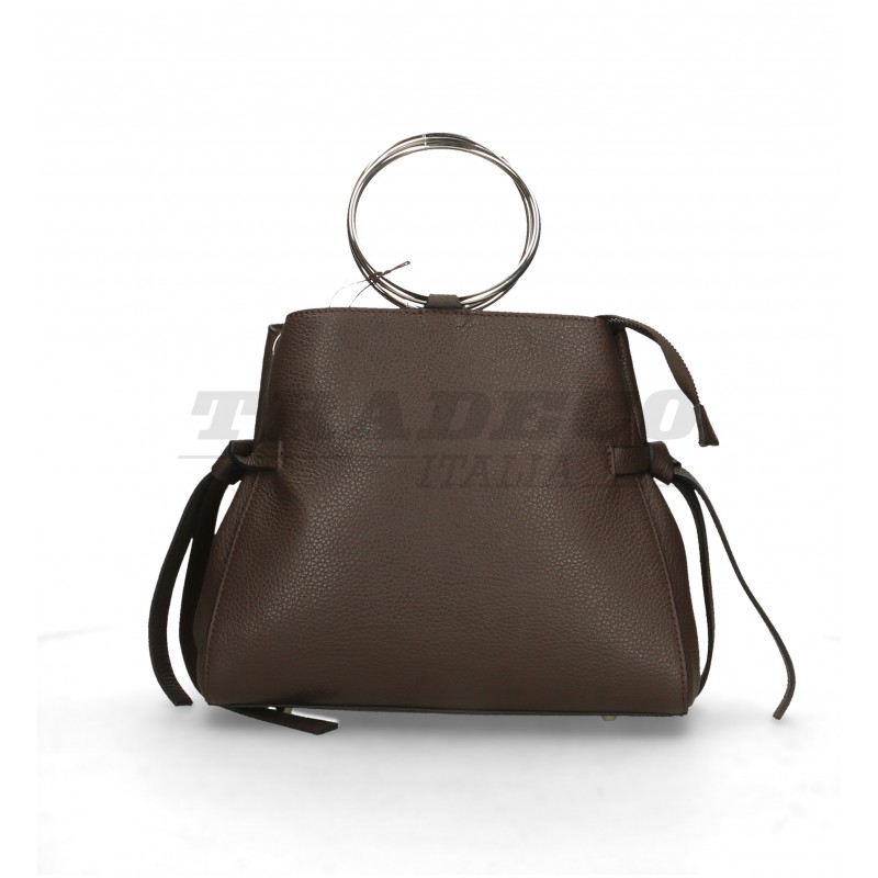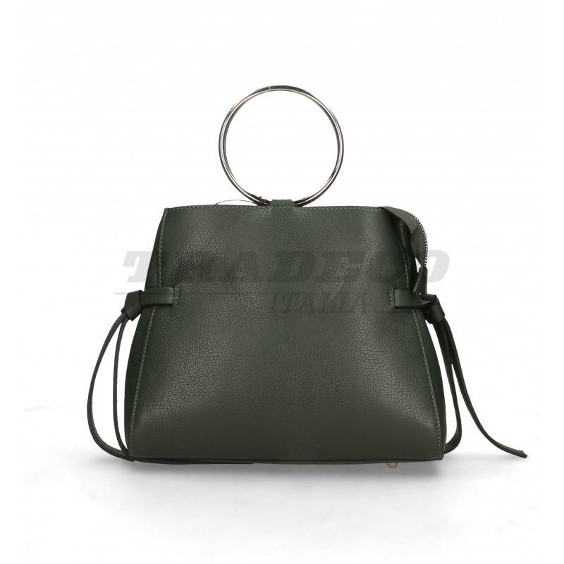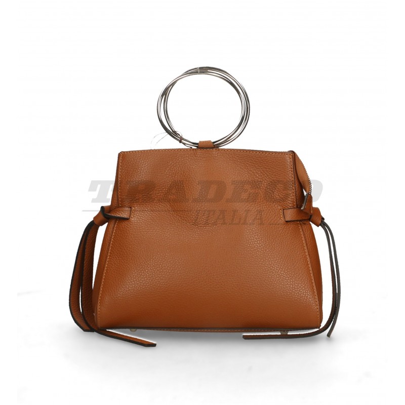 Description: detachable shoulder strap leather bag with two metal hoop handles