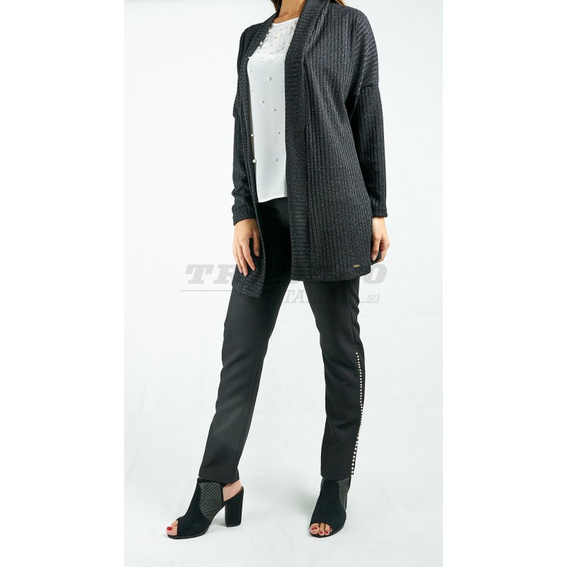 Description: long sleeve glittery cardigan sweater open on the front
