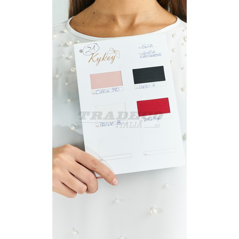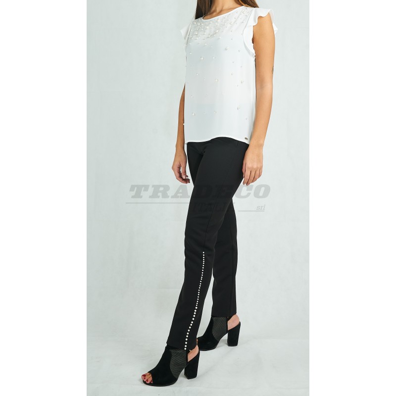 Description: short sleeve blouse with frilled sleeves and pearls on the front