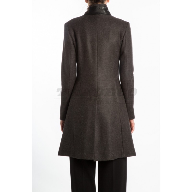 Description: long sleeve coat with leatherette inserts on the neck and on the pockets
