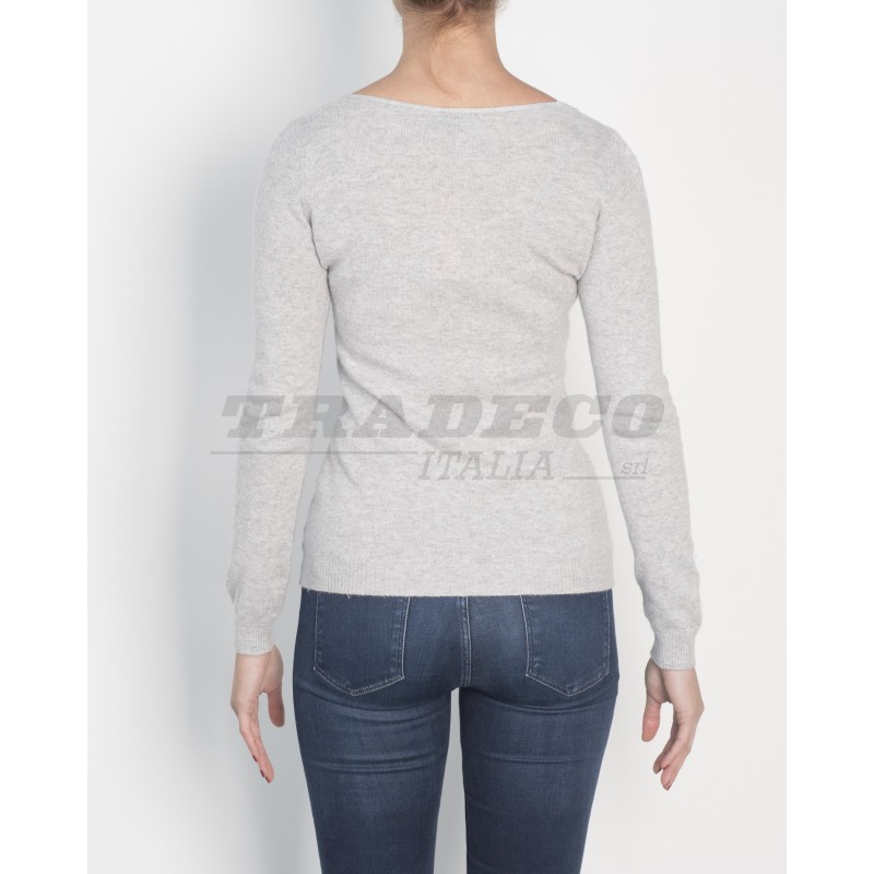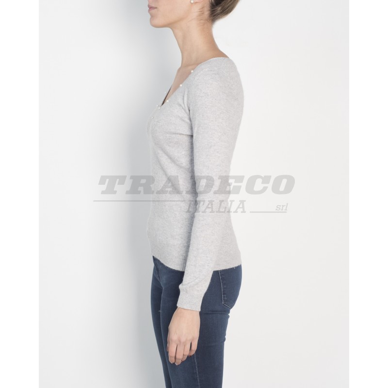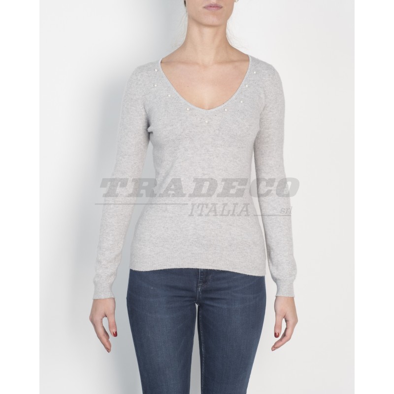 Description: woman basic V-neck sweater with little pearls and rhinestones