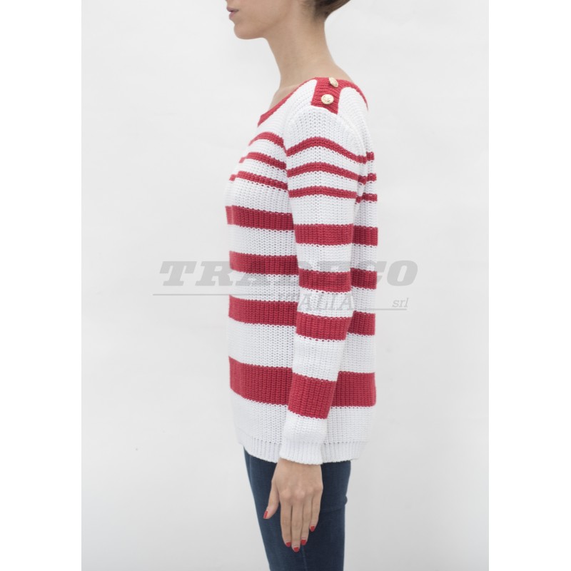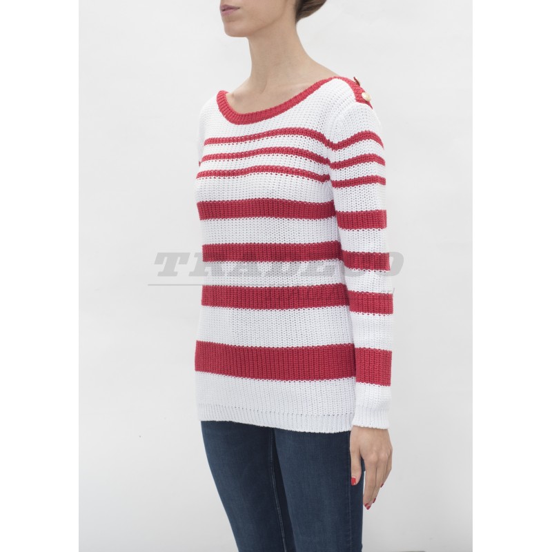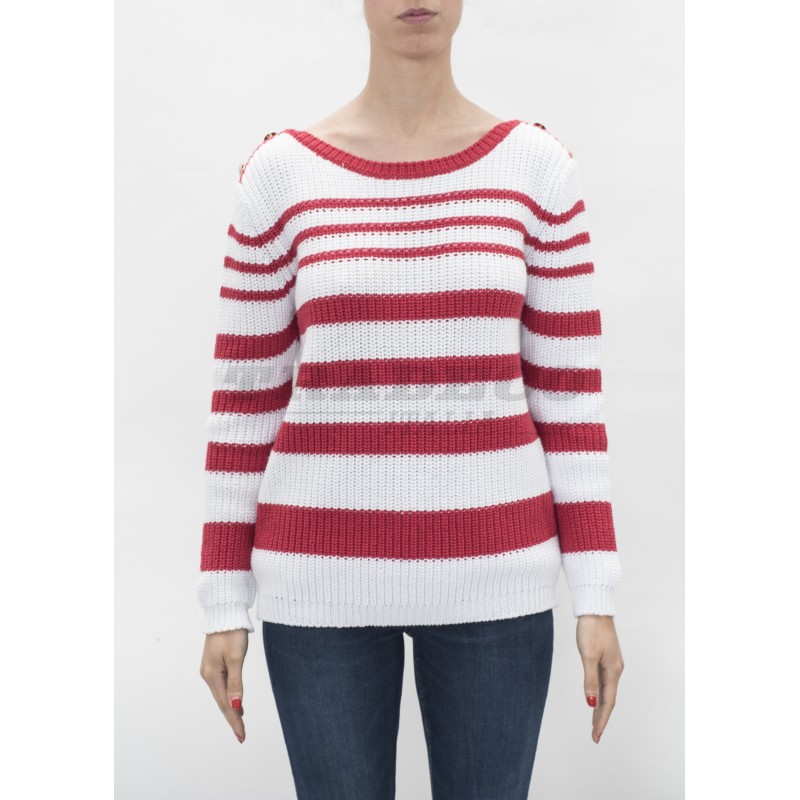 Description: striped sweatshirt with buttons on the shoulders