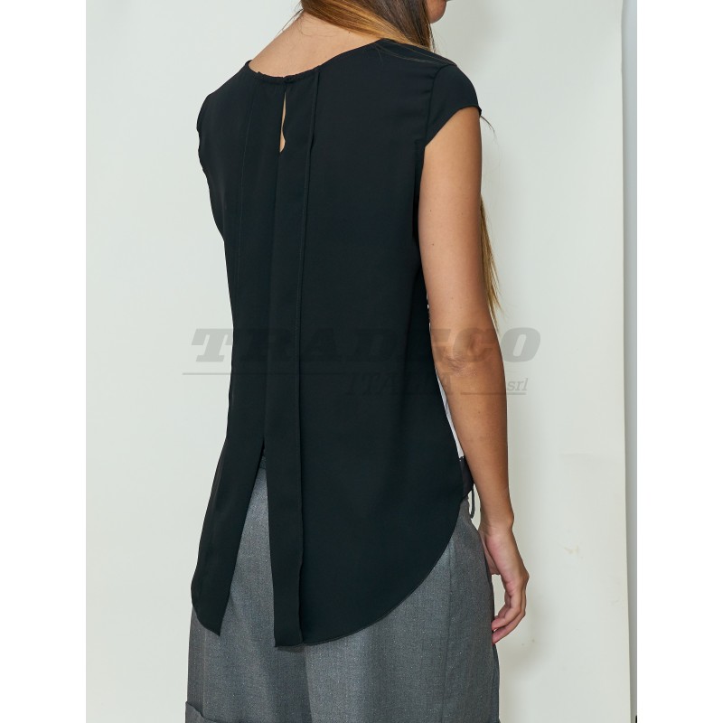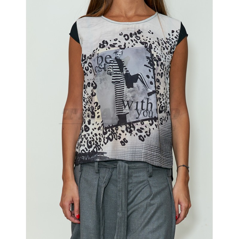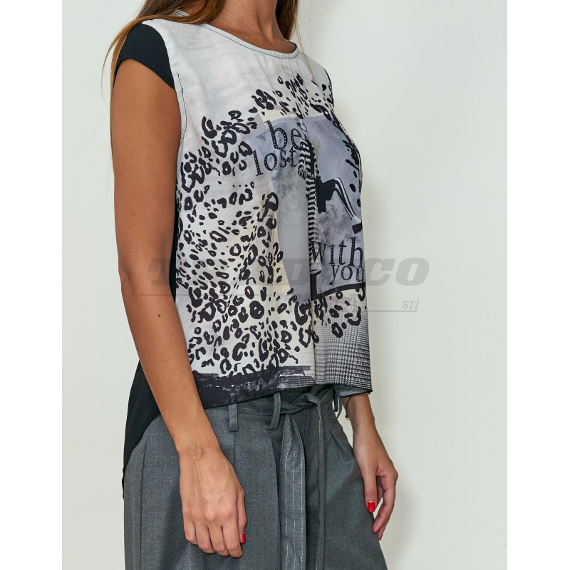 Description: asymmetric hem printed short sleeves blouse with back opening