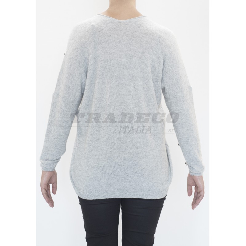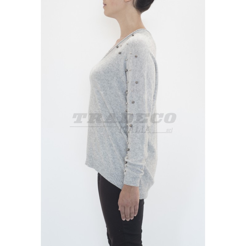 Description: long sleeve V-neck sweater with faux pearls on the sleeves