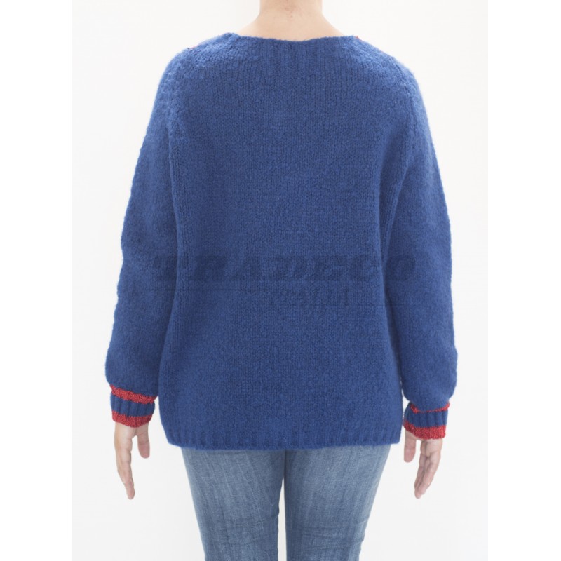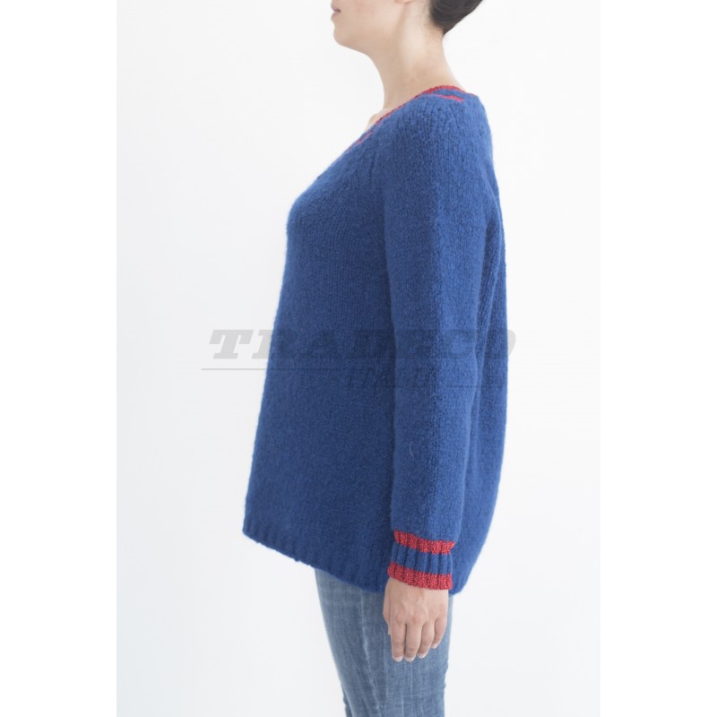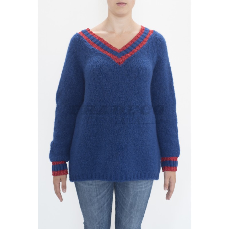 Description: V neck sweater with red details