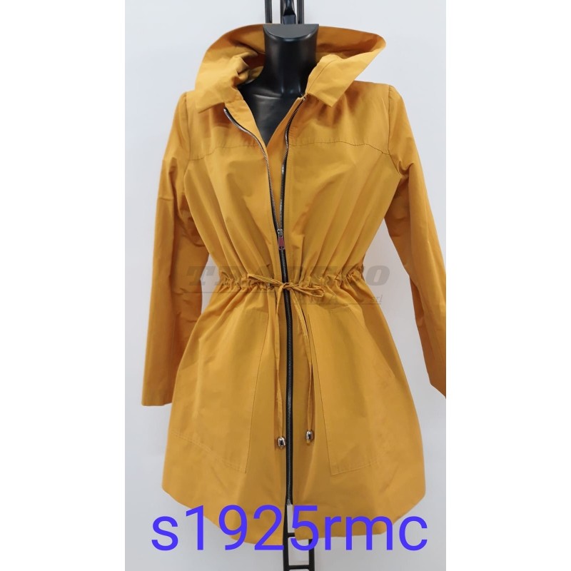 Descripción: gabardina de mujer con cintura elástica, cierre de cremallera y cordón en la cintura