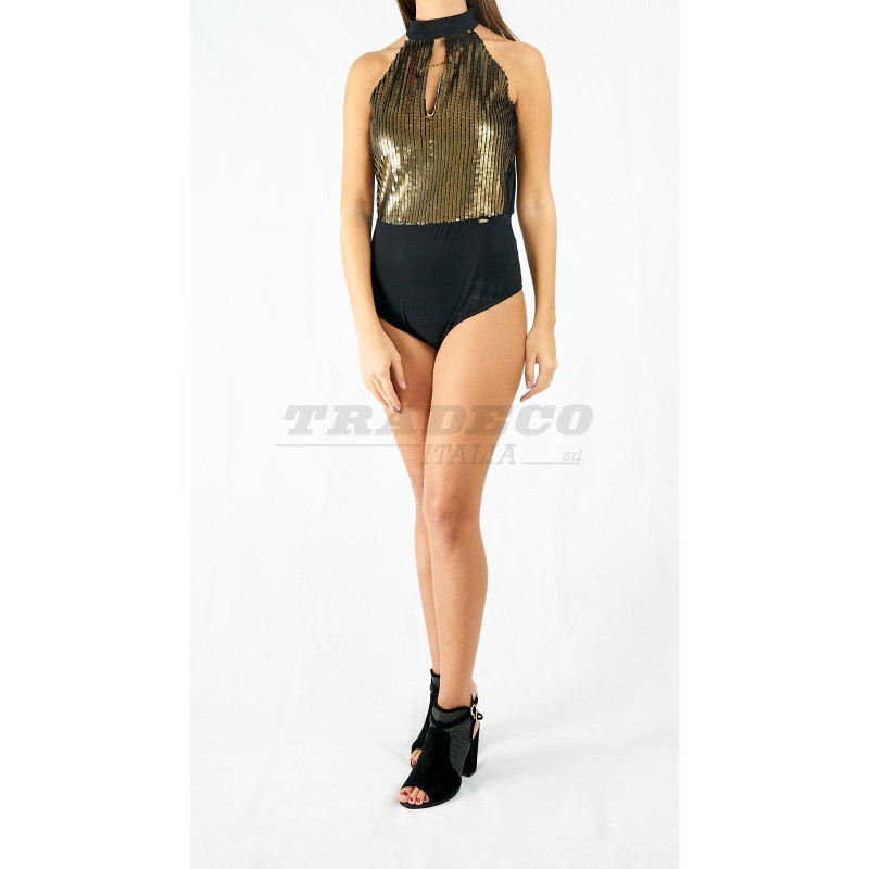 Descripción: body de lentejuelas doradas con escote lágrima delantero